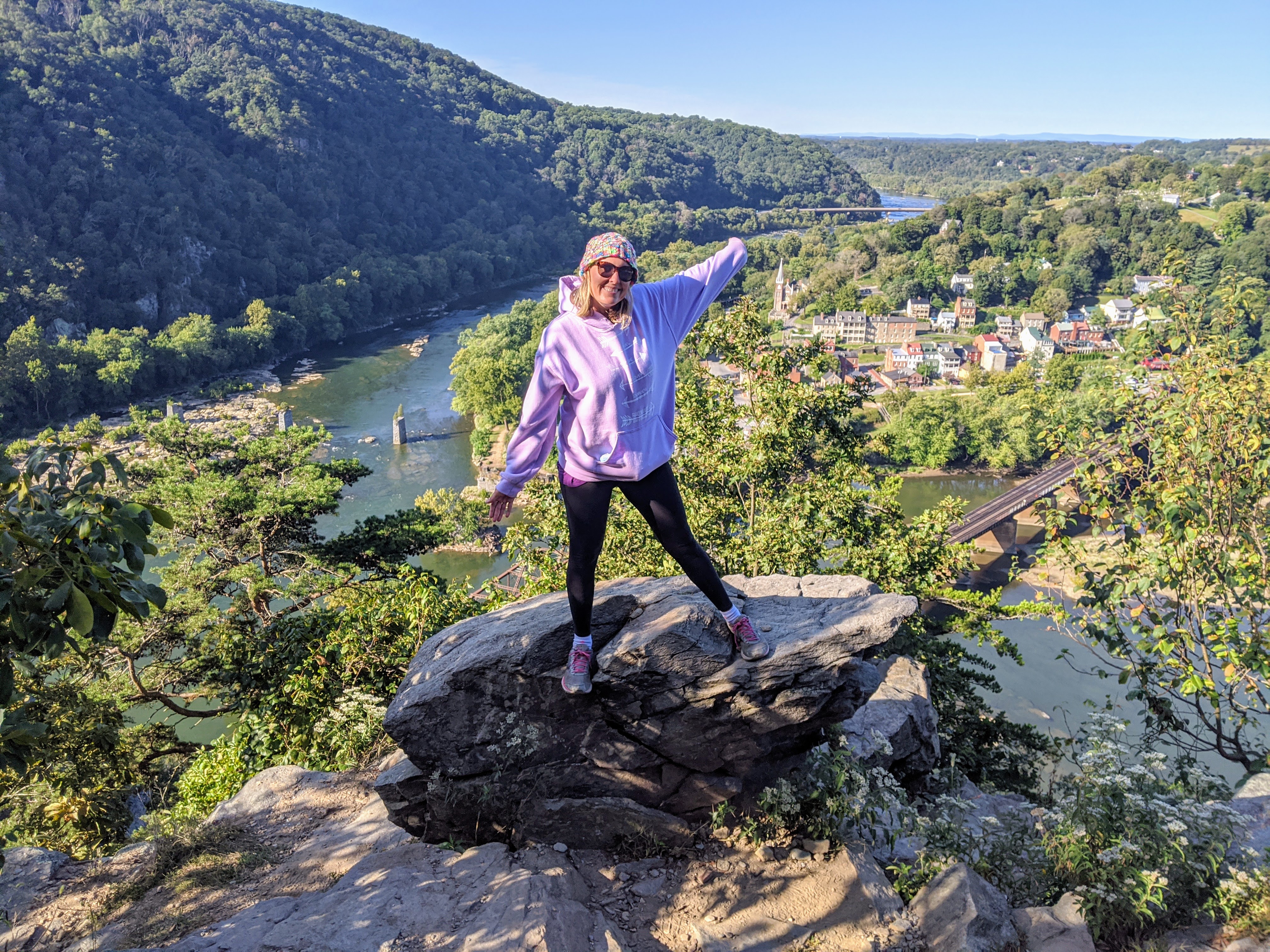On an unseasonably cool day in September, we decided to tackle the Maryland Heights Trail in Harpers Ferry National Historic Park. This is a 4.5 mile roundtrip hike from lower town. In non-COVID times you can usually park in the huge parking lot at the visitor center and take the shuttle to lower town where you can connect with the trail. However, due to COVID the shuttle wasn’t running and parking was very limited. It is possible to walk from the Visitor Center to Lower Town, but this will add around 1.5 miles each way. So we decided to suck it up and get up early in hopes of getting a parking spot at the Harpers Ferry Train Station. We were successful, but if you visit on a Saturday when the shuttle is not running I would definitely recommend getting up early!