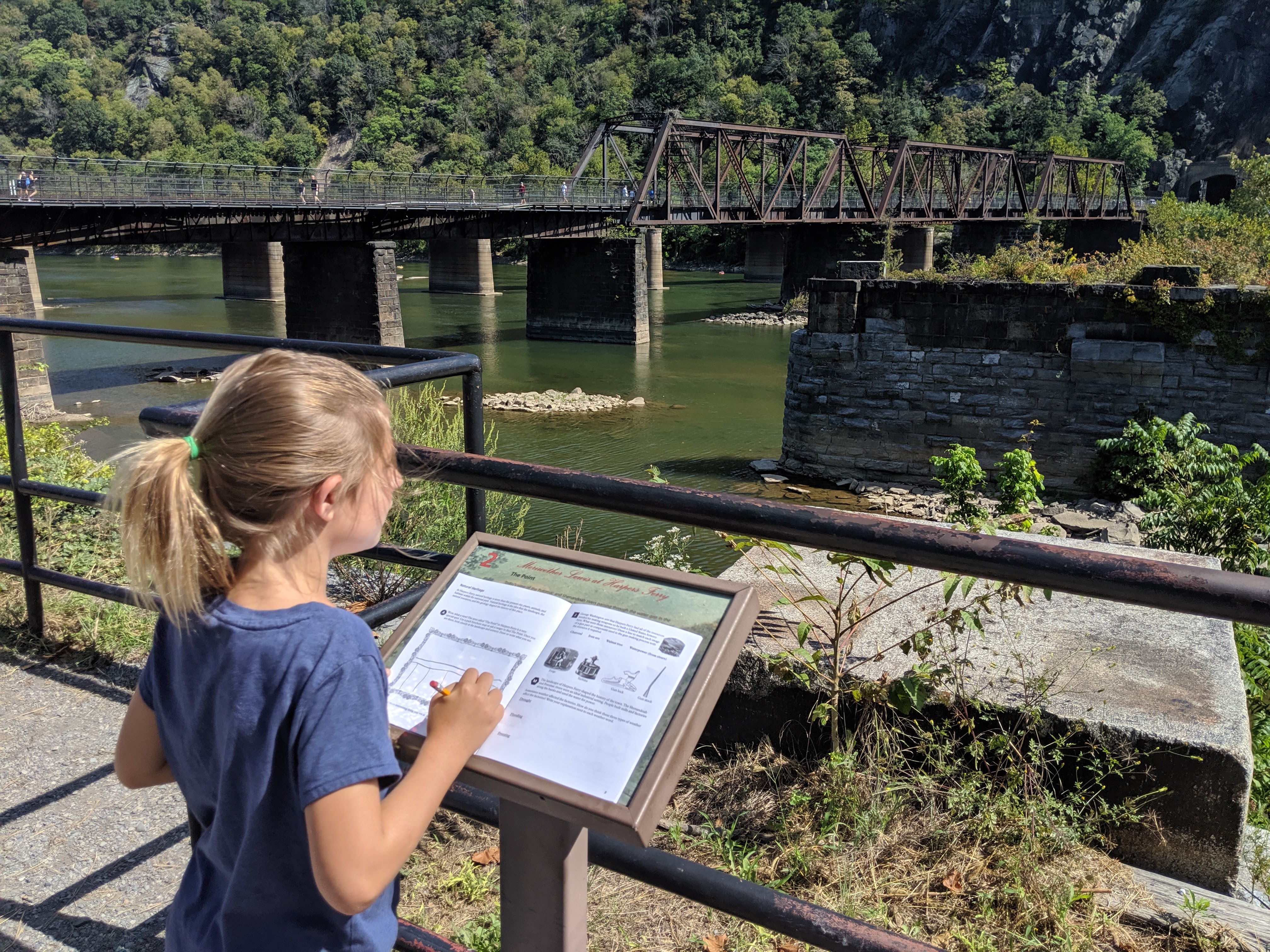 A great place to start your visit is at the Harpers Ferry National Historical Park. In non-Covid times you can visit the Visitors Center and pick up a Junior ranger booklet for the kids. This will keep them busy searching for information they need to complete their book while you explore the museums and old shops they may usually think of as boring. There is a lot of history and artifacts to explore in the different buildings in lower town. From the visitors center you can either take the shuttle (if its running) or walk the 1.5 miles to lower town.