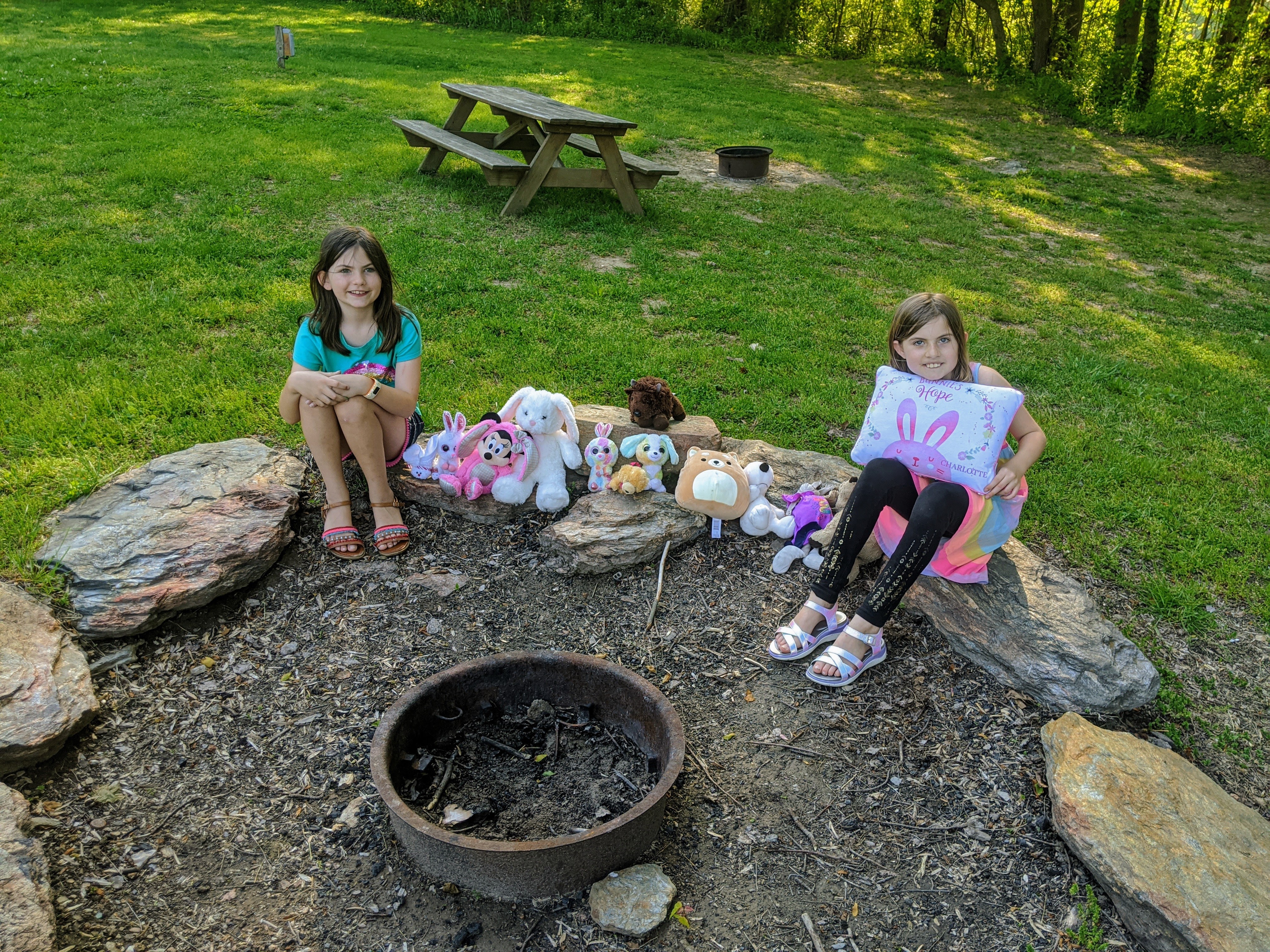 The firepit was amazing, with plenty of room for a large party! They also gave you a large amount of firewood when you purchased, unlike some campgrounds that give you a small bundle. The firewood did have a lot of sap, so that took some time to burn off.