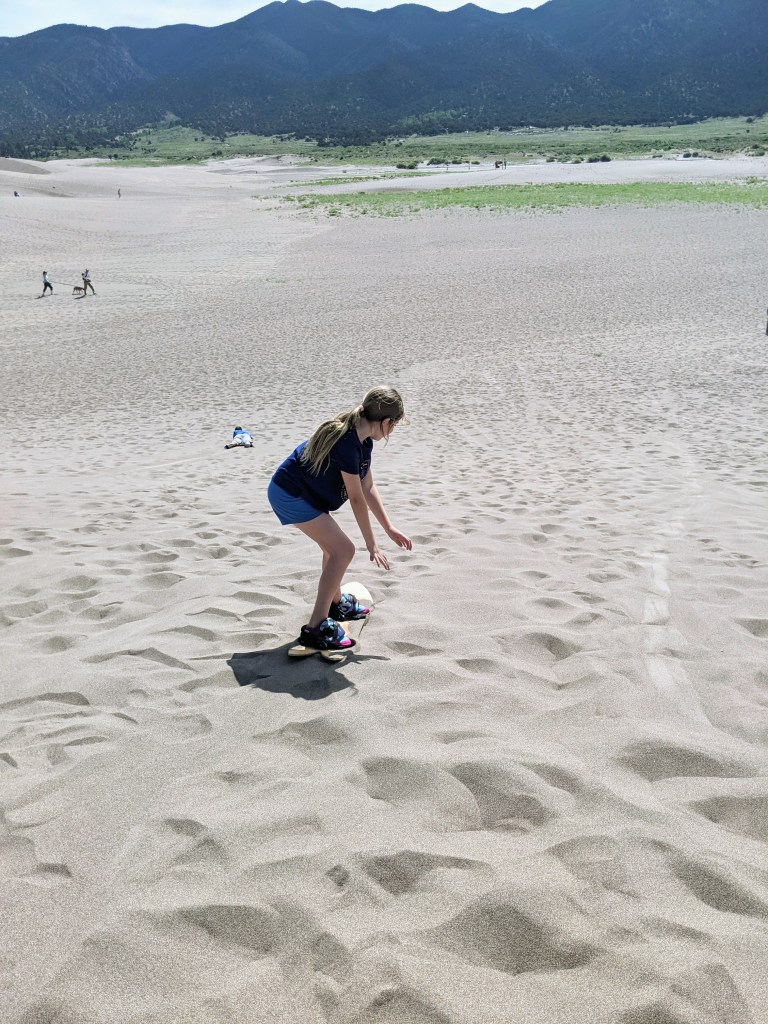 The Oasis Store a few miles outside of the park rents sandsleds and sandboards for around $22 each. We arrived around 8 when they opened and had no trouble with availability. They did say they do sell out, especially on weekends We rented 3 and were able to share them. Walking up the dunes to sled back down is a lot of work so we needed breaks! The sleds come with a special type of wax that makes them more slippery then a normal sled. The sand is really hot so closed toed shoes are a must! There isn’t any shade so bring plenty of water. The kids loved doing this and we spent a few hours here! In the summer it was great to go in the morning before it got too hot.