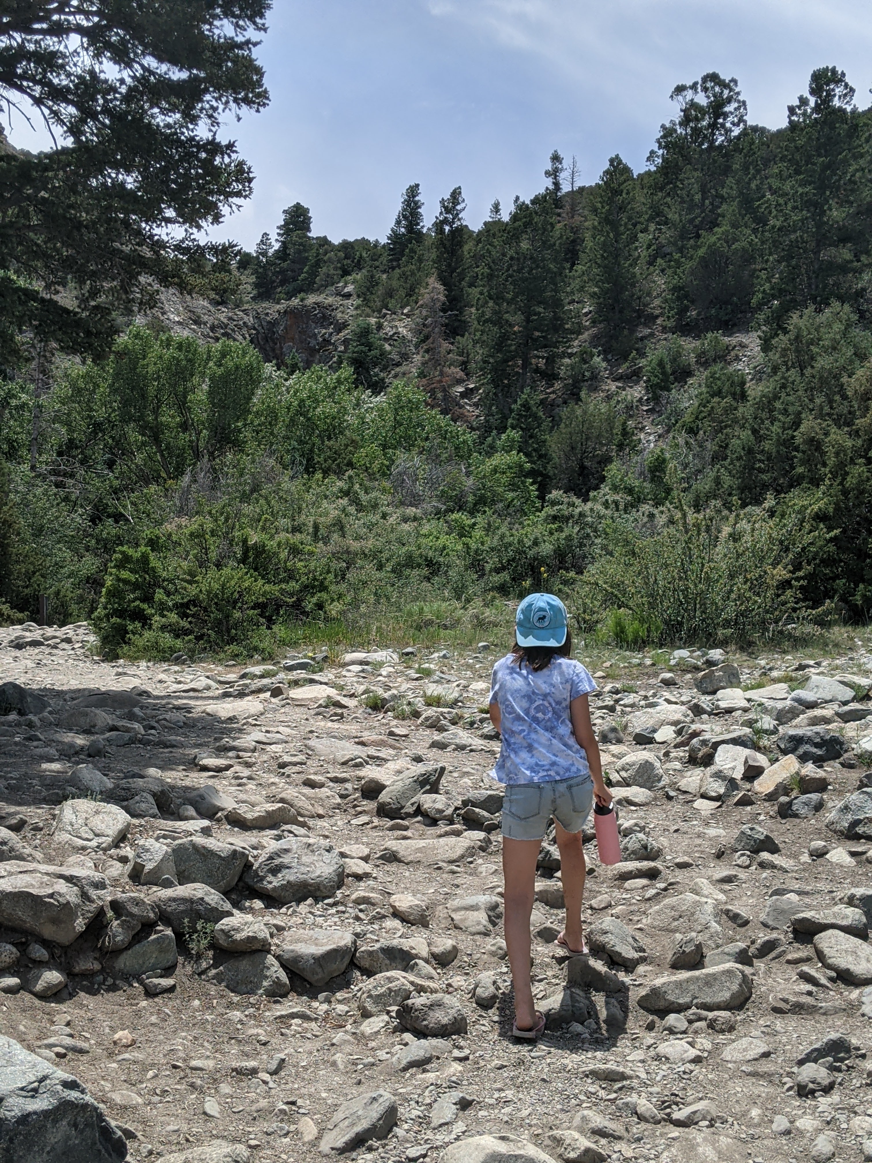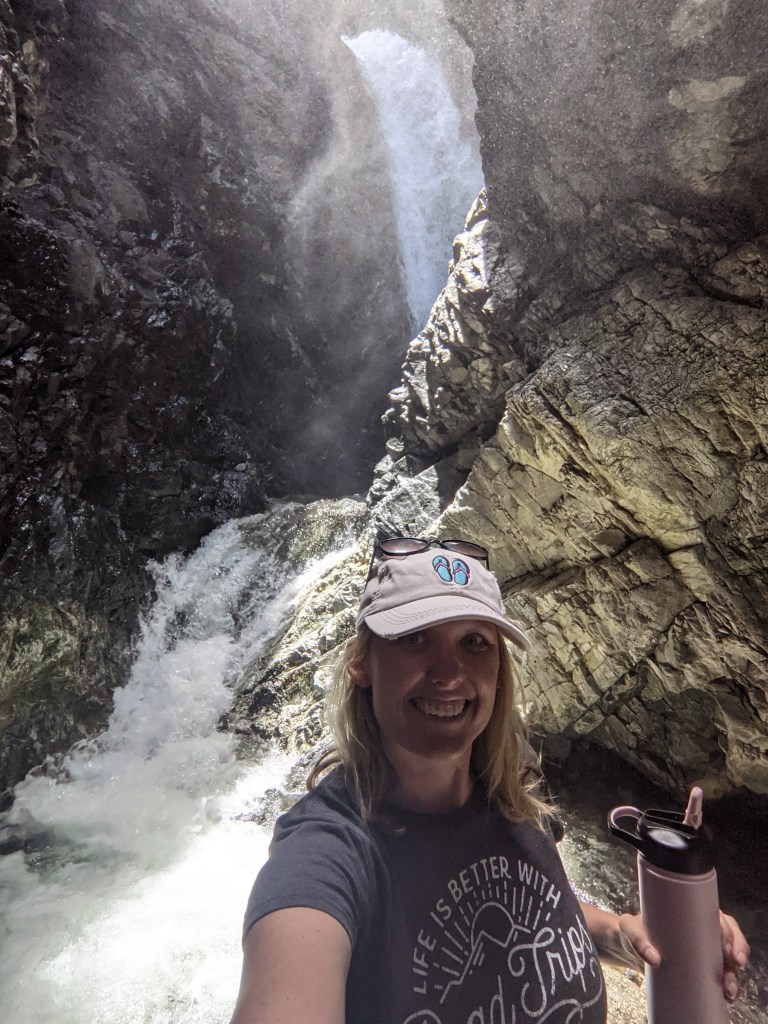 After all the work hiking up the sand dunes we headed to Zapata Falls to cool off. This was a few miles outside the park on the way back to our campground. The trailhead is 3 miles down a dirt, rocky road. We didn’t need four wheel drive but it was a bumpy ride! The hike to the waterfall is 1/2 mile each way. It’s a pretty steep uphill climb until you get to the river. Once at the river, you walk in the water to get to the waterfall. The water is toe numbing freezing! We had to take breaks on top of rocks to warm up our feet. As we went around the corner the waterfall was beautiful but very cold as the spray hits you!