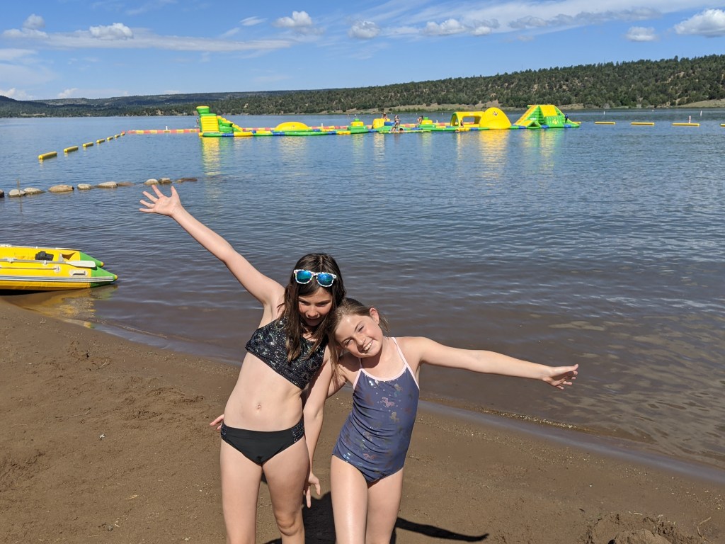 After a full day in Mesa Verde we wanted to find something fun for the kids to do. We found a hidden gem called Lake Nighthorse, located about 50 minutes away near Durango. For just $10 per vehicle we got entrance to the lake, plus access to life vests and the Witbit Aqua Park. Kayak and SUP rentals were also available. The kids loved this and had so much fun!