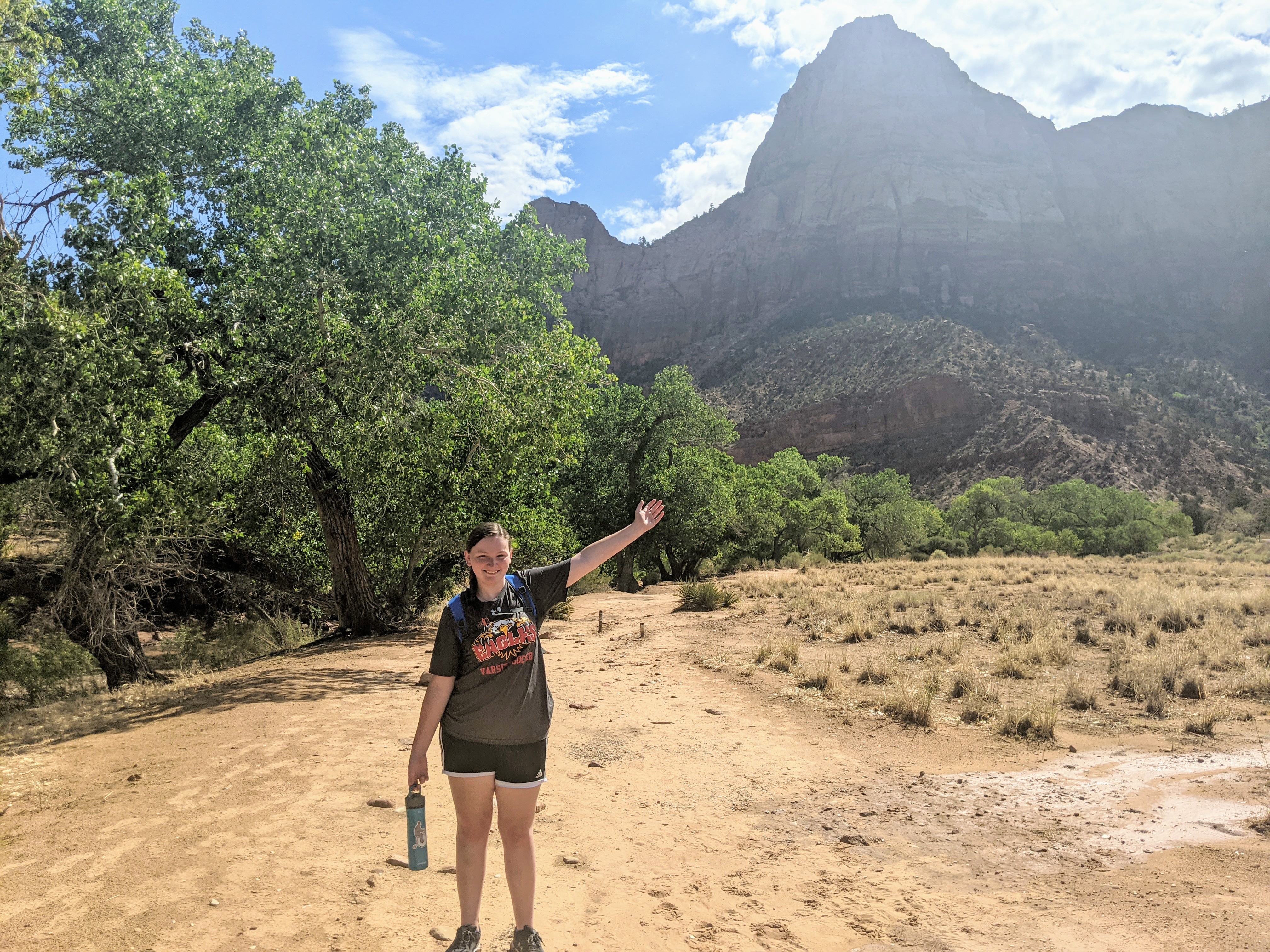 Our plan was to hike the Narrows the next day, but due to all the debris and the high water from the flood we decided against it. We also knew we needed to change campgrounds, and were able to make a reservation in St George for the following night. Before we left we decided to walk into Zion and do the Watchman Trail (you can do this from the visitor center without the shuttle). I’m glad we did it, as the views were beautiful. The trail is 3.1 miles round trip and there are some steep switchbacks to teach the top.