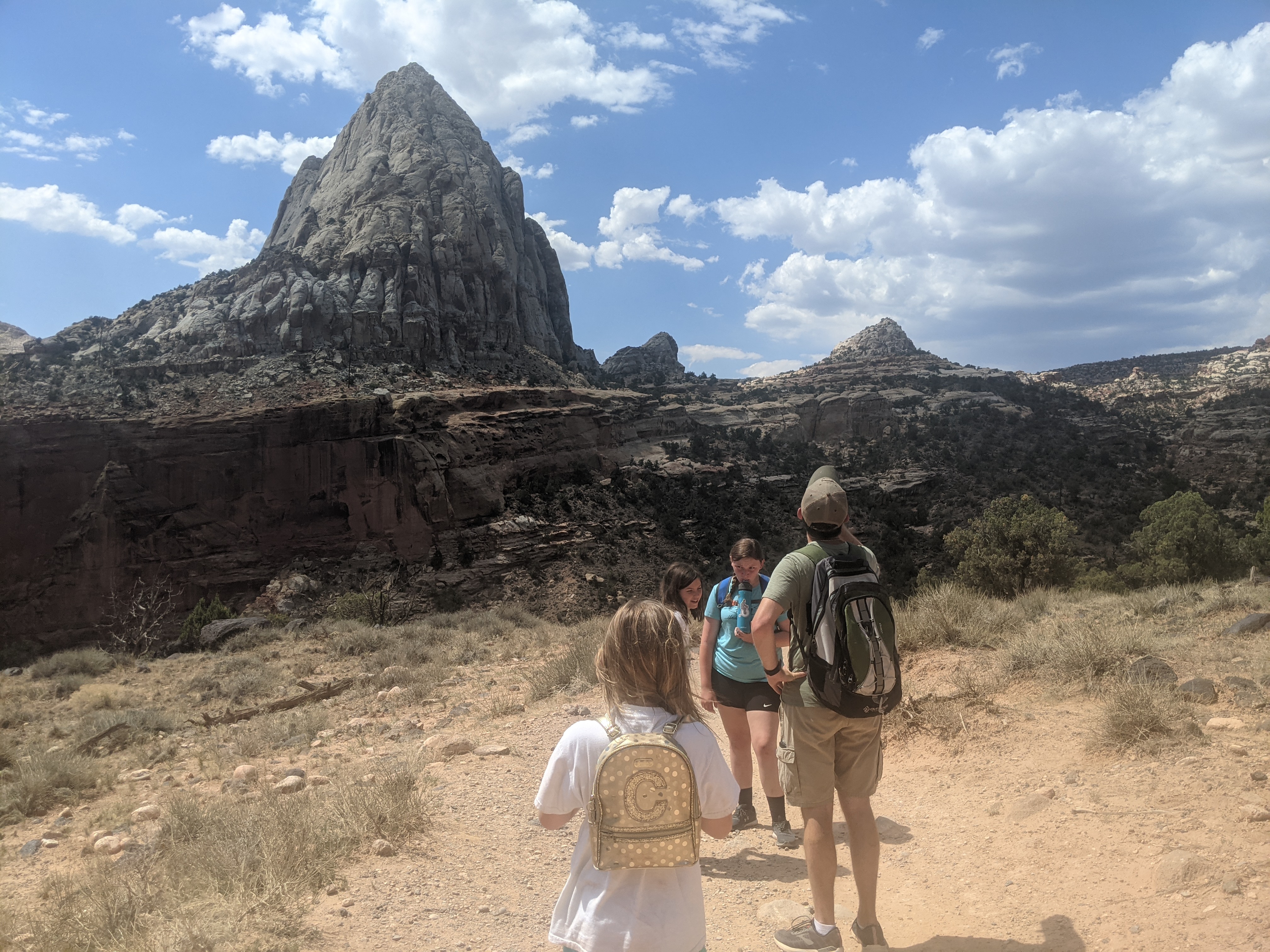 Hickman Bridge Hike is a 2 mile round trip hike. We quickly learned this would be an uphill hike to start, with some tough elevation. We would have liked to start earlier to avoid some of the heat, but we pushed on anyway.